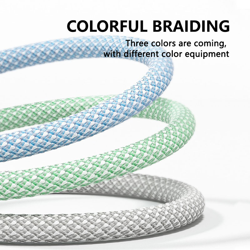 Nylon Weaving 60W Fast Charger Cable Material: Nylon weaving Color: Grey, Pink, Bule, Yellow, Purple, Green Function: charge + data transfer Length: 1m Weight: 30g Current output: 20V/3A=60W Connector: Type C to Type C